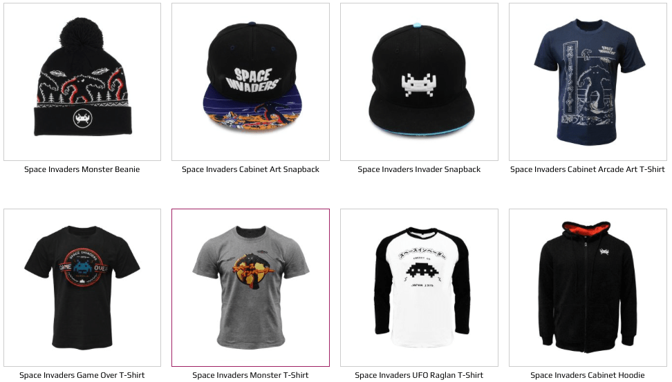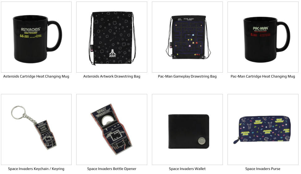 Comme on peut le voir ci-dessus, il y a une belle collection de vêtements et ça devrait plaire au plus grand nombre. Les produits dérivés sont basés sur Space Invaders, Pac-Man et Asteroids mais aussi la marque Atari qui fleure bon le retrogaming.