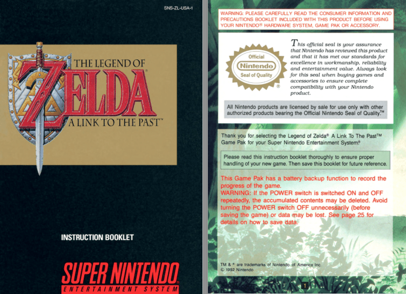 Nintendo a d’ailleurs bien fait les choses puisqu’il a mis à disposition les versions US de ces manuels (en anglais comme les versions des jeux inclus). Ce sont les modèles identiques à ceux qui étaient imprimés et inclus dans les boites des cartouches.