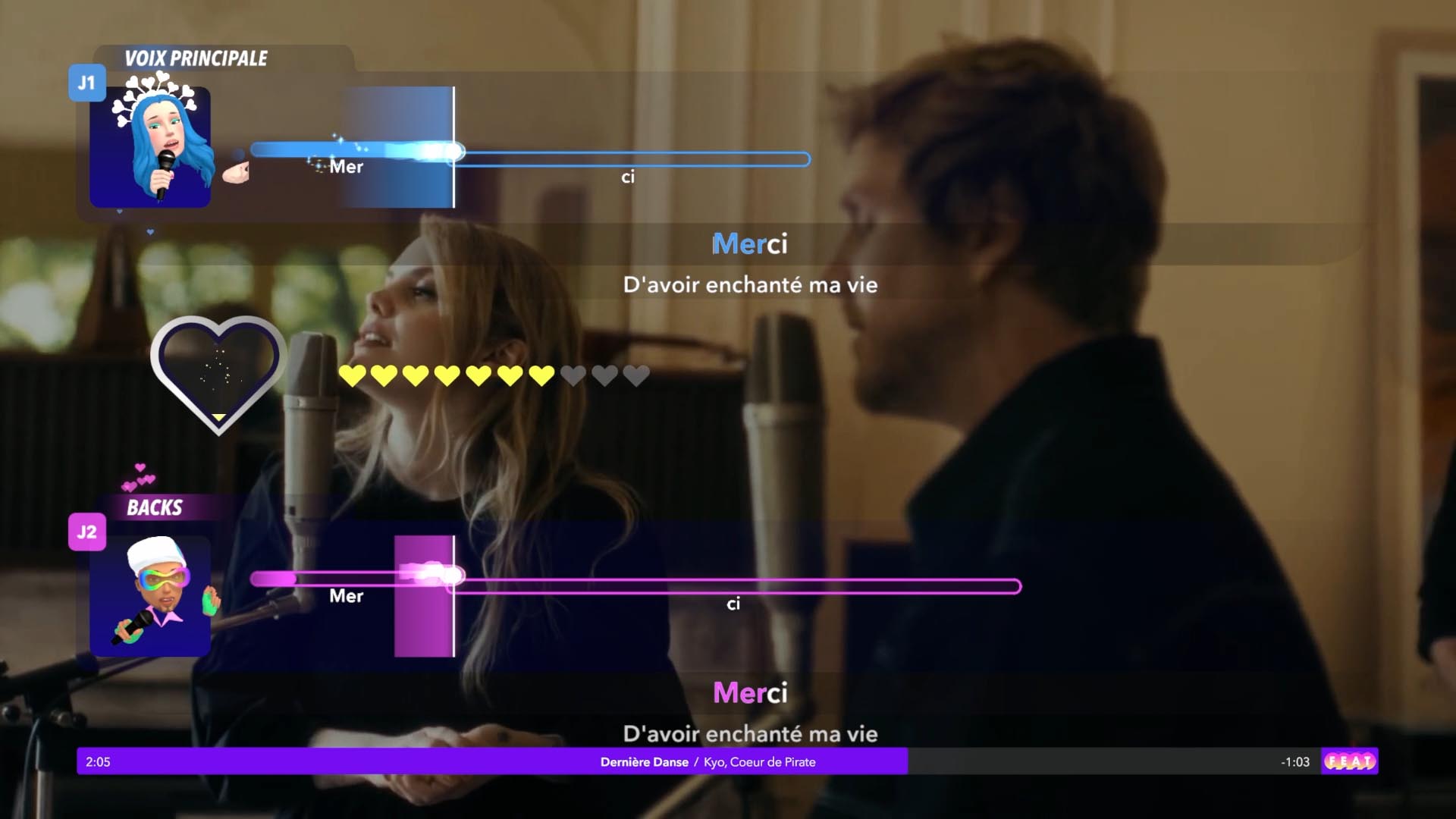 Avec des améliorations de l’interface et des modifications du mode Carrière je suis très satisfait par Let’s Sing 2025 surtout que j’ai l’impression que les micro filaires marchent super bien. On peut utiliser l’appli aussi mais avec les micro USB c’est le must je trouve (en plus du look !). Les micros du pack permettent de bien profiter du mode Feat de la « Zone Karaoke » dans le menu. Un mode coopération qui est sympa sauf si on préfère les duels.